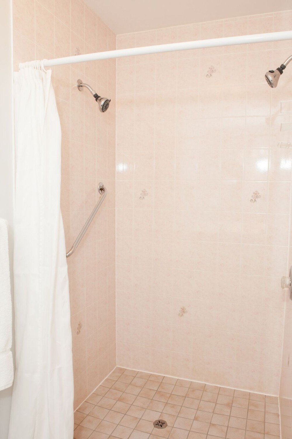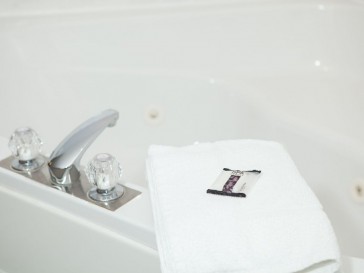 A large room on the end of the building with a two person whirlpool tub, 32 inch cable TV, small fridge, coffee maker, microwave, king bed, and extra windows (3 sides). The room is also equipped with desk and chair, telephone, iron, ironing board, fridge, and hair dryer. There is also a sitting area with a table and two chairs. The two person whirlpool is located out in the bedroom next to the bed and the bathroom includes a stand up shower.